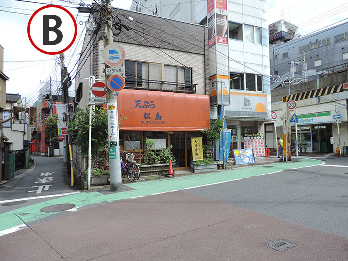 船橋駅構内あるShapo(中央改札正面ショッピングモール)を抜け正面ファミリーマート(高架下)の左手の道を線路沿いに進み最初の曲がり角(一方通行)を左に折れ道成に進み左手に見えてくる青色のビル3F
